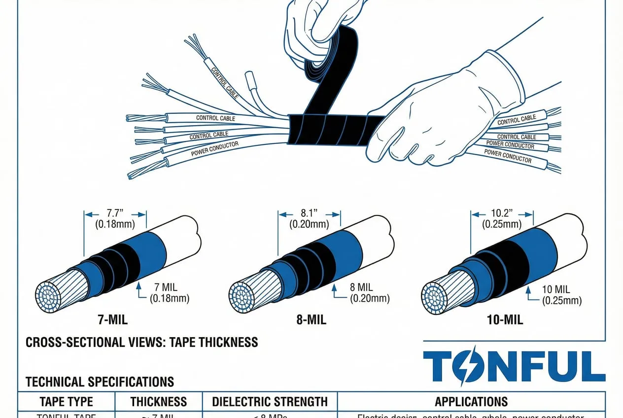 - Elongation: With an elongation capability of around 200-250%, 7-mil tape is highly conformable. It can be stretched tightly around irregular shapes, wires, and splices to create a void-free, moisture-resistant seal without breaking.
