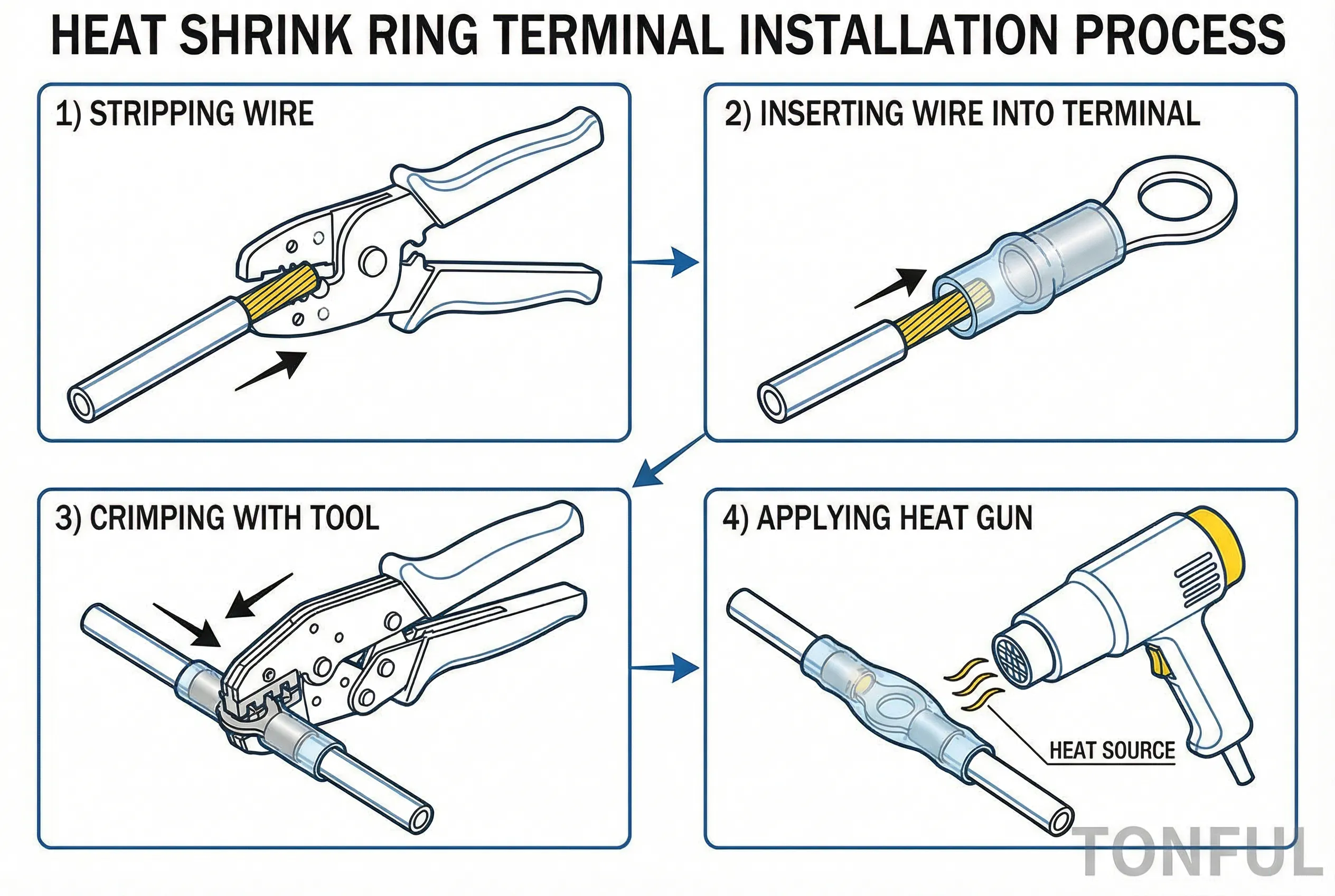 A heat shrink ring terminal can only provide its full benefits when installed correctly. Using the wrong tools or improper technique can lead to a false sense of security and a connection that is destined to fail. Follow these steps to ensure a perfect, professional-grade result every time.