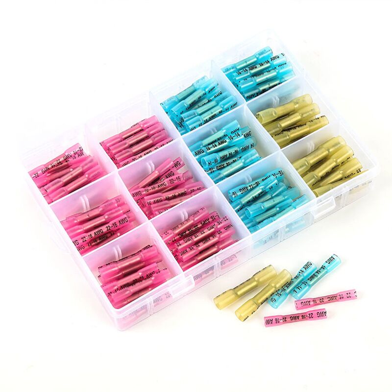 - 【Kit Include】Includes 3 sizes, 200 pieces Heat Shrink Butt Connectors in total, 90 pieces Red (A.W.G.:22-18) butt connectors, 90 pieces Blue (A.W.G.:16-14) butt connectors, 20 pieces Yellow (A.W.G.:12-10) butt connectors, which comes within a storage box.